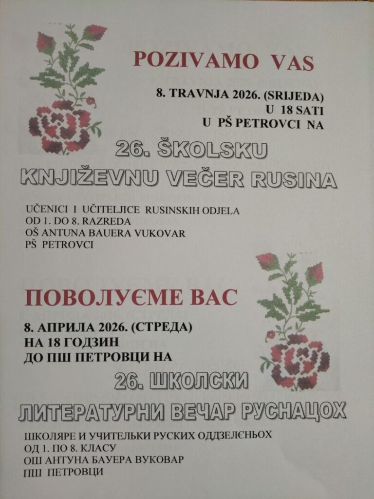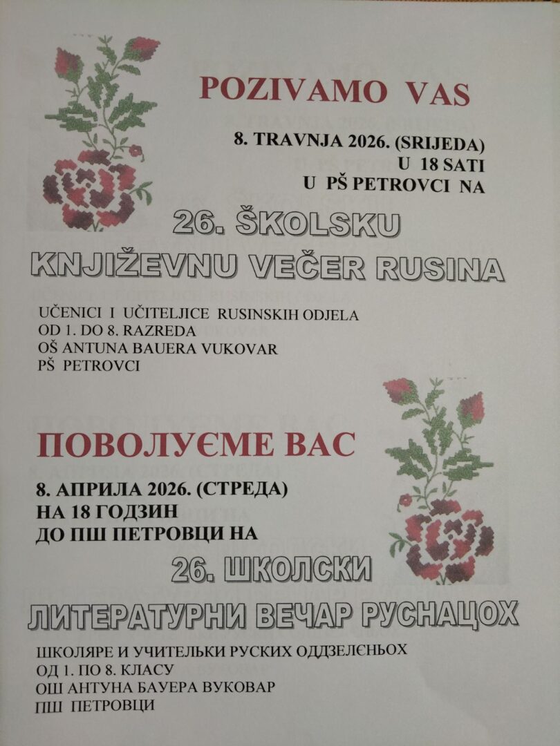 Pozivamo vas na 26. školsku književnu večer Rusina.
