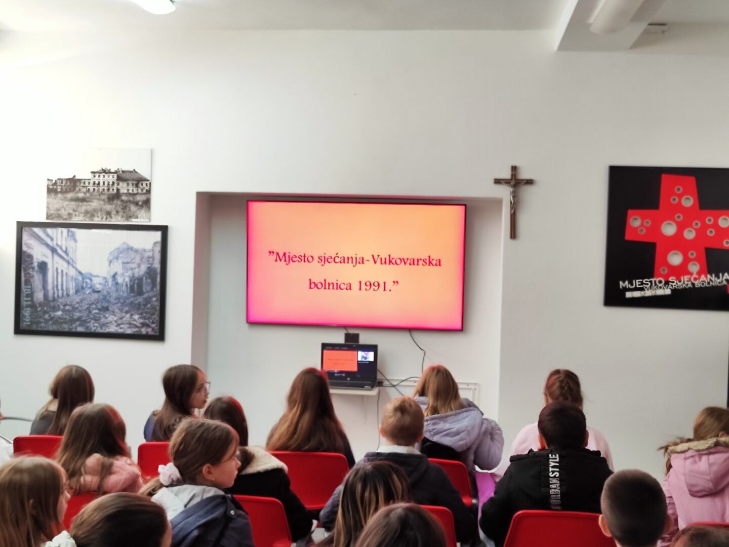 Uz voditeljicu Anu, koja nas je ljubazno dočekala, učenici su pogledali kratku prezentaciju o ratnim zbivanjima u bolnici te nas je nakon toga provela kroz Muzejski dio bolnice koji predstavlja vjernu rekonstrukciju podruma tijekom opsade grada.