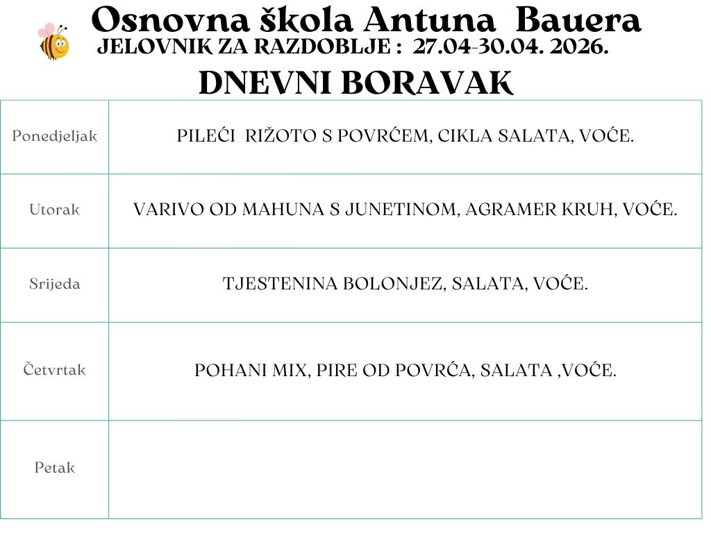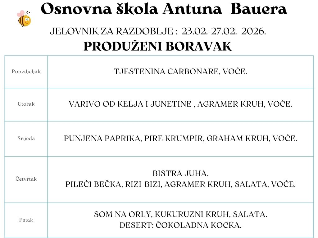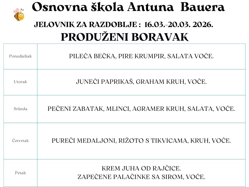 Jelovnik u produženom boravku