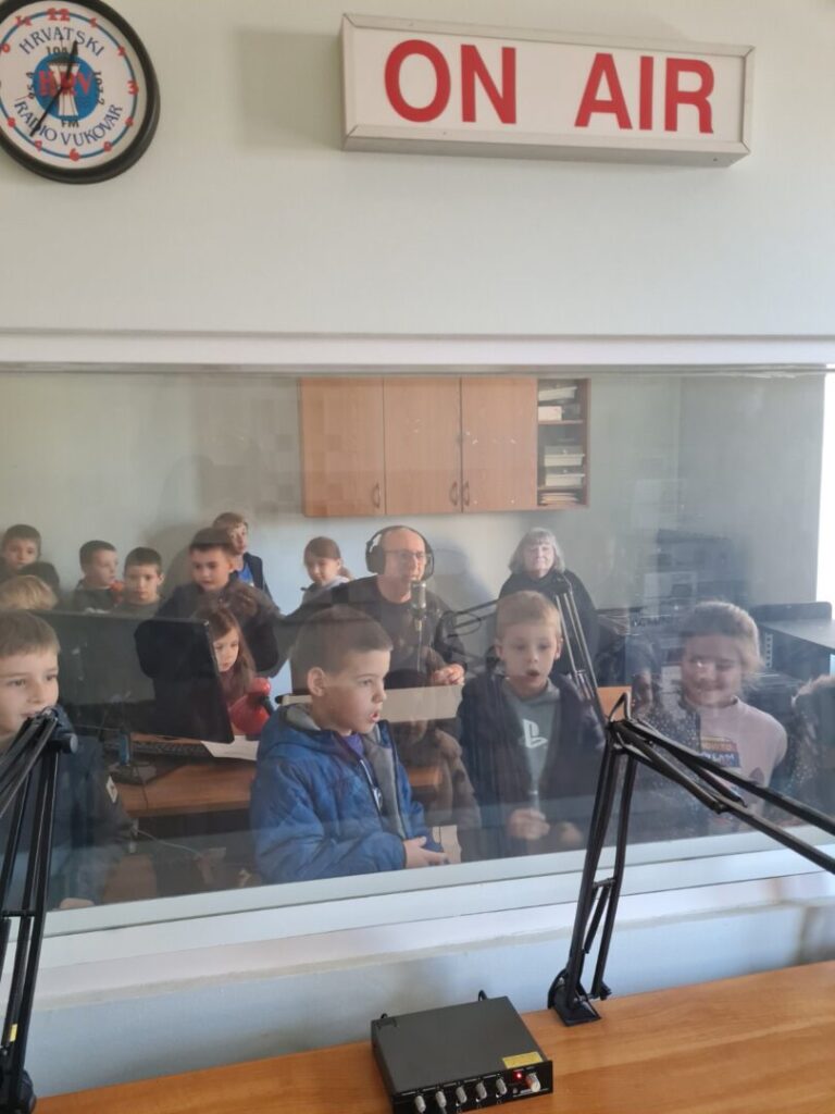 Učenici su zatim posjetili glavni studio Hrvatskoga radija Vukovar, odakle se uživo emitira program, te saznali kako funkcionira radijski eter.